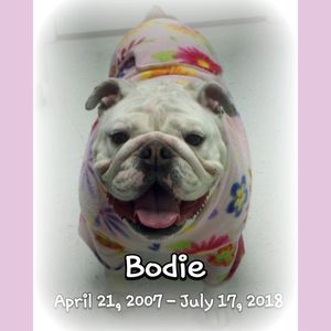 Bodie was the most loving dog. She was loved by many and will missed so much. Our hearts are broken, but know you are at peace now.